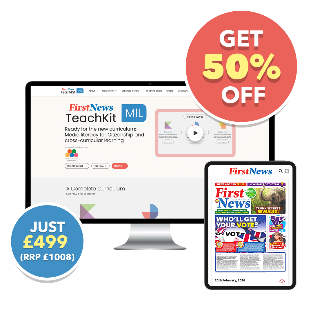 Our impartial, age-appropriate journalism through First News Digital helps young people understand the world around them. Match this with our TeachKit of media literacy resources, closely tied to the news, and you’ll ensure learners don’t just read the headlines – they read between them too. Get this package for just £499, saving over £250 when buying the products separately. Plus, receive a £100 book voucher for your school. Ts&Cs apply.