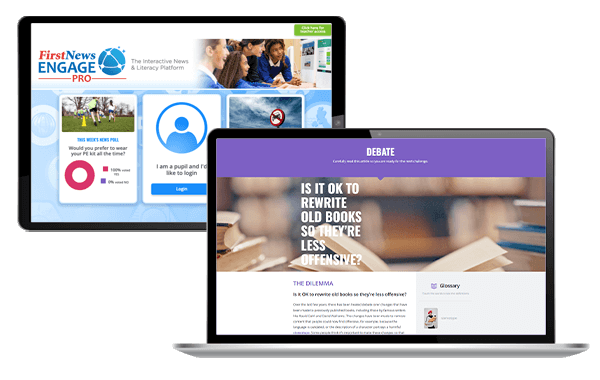 Brand-new topical literacy resources every week during term time, based on the latest stories from First News.